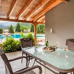 無料の専用駐車場とプライベ-トプ-ルを提供するVilla Stymfaliaは,川の眺めに向けた静かな部屋を有しています.
